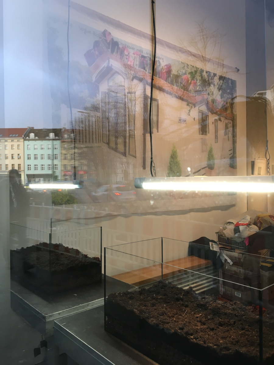 Materials: Glass vitrines, LED/Fluorescent grow lights, capillary mat, growing medium/substrate, Organic non-peat based compost, plants (should be local wild species, cultivated responsibly), Voiles/Curtains