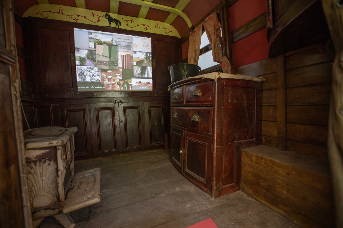 The Hartlebury Museum’s wonderful collection provides a unique way of presenting my work. The wagon offers an unexpected window which looks out into a different time, space, and memory, blurring past’s, present’s, and futures.
